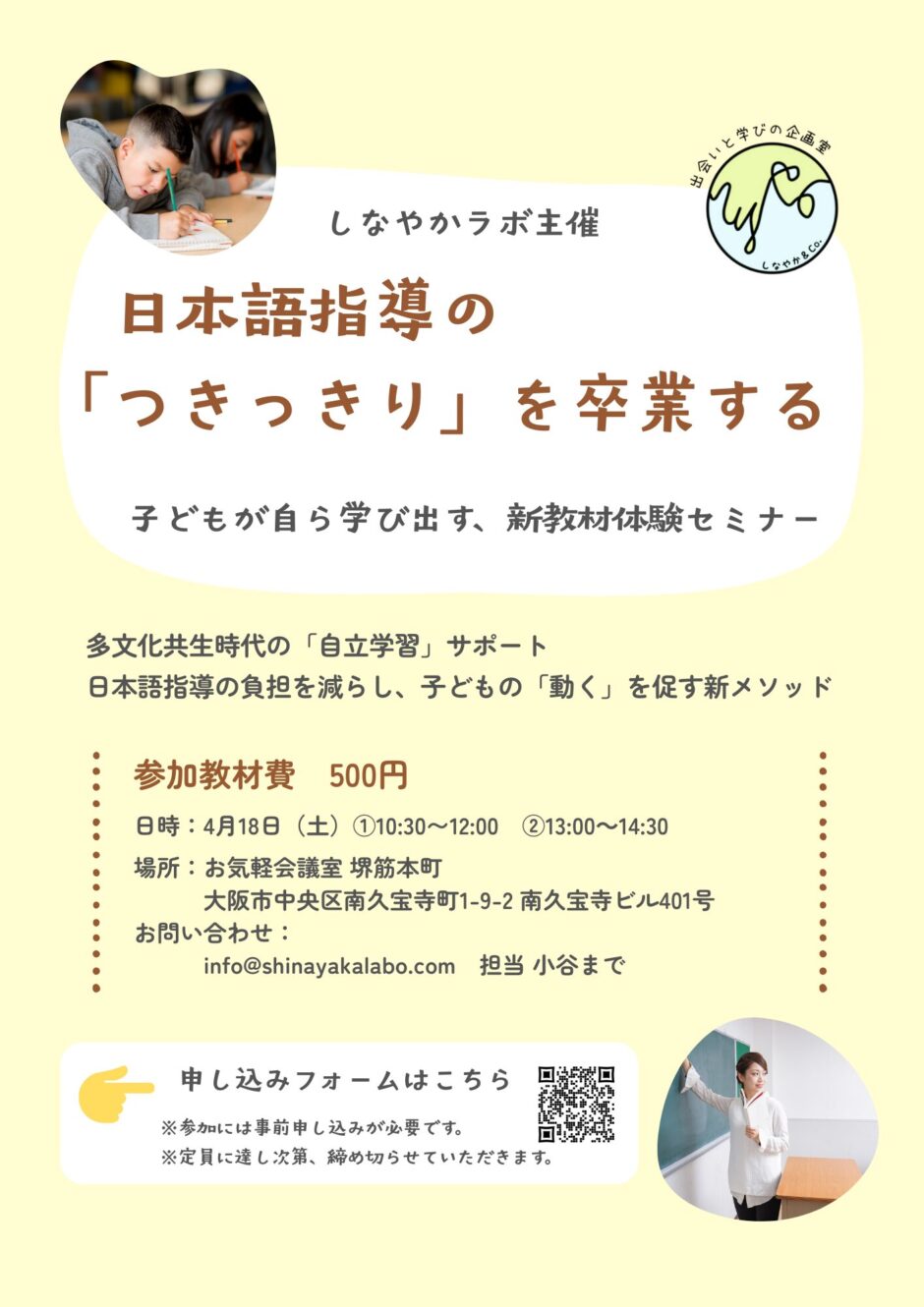 ※参加費(教材費)500円は当日現金でお支払いください。