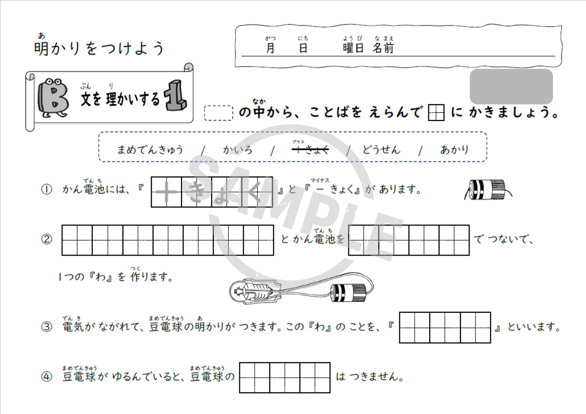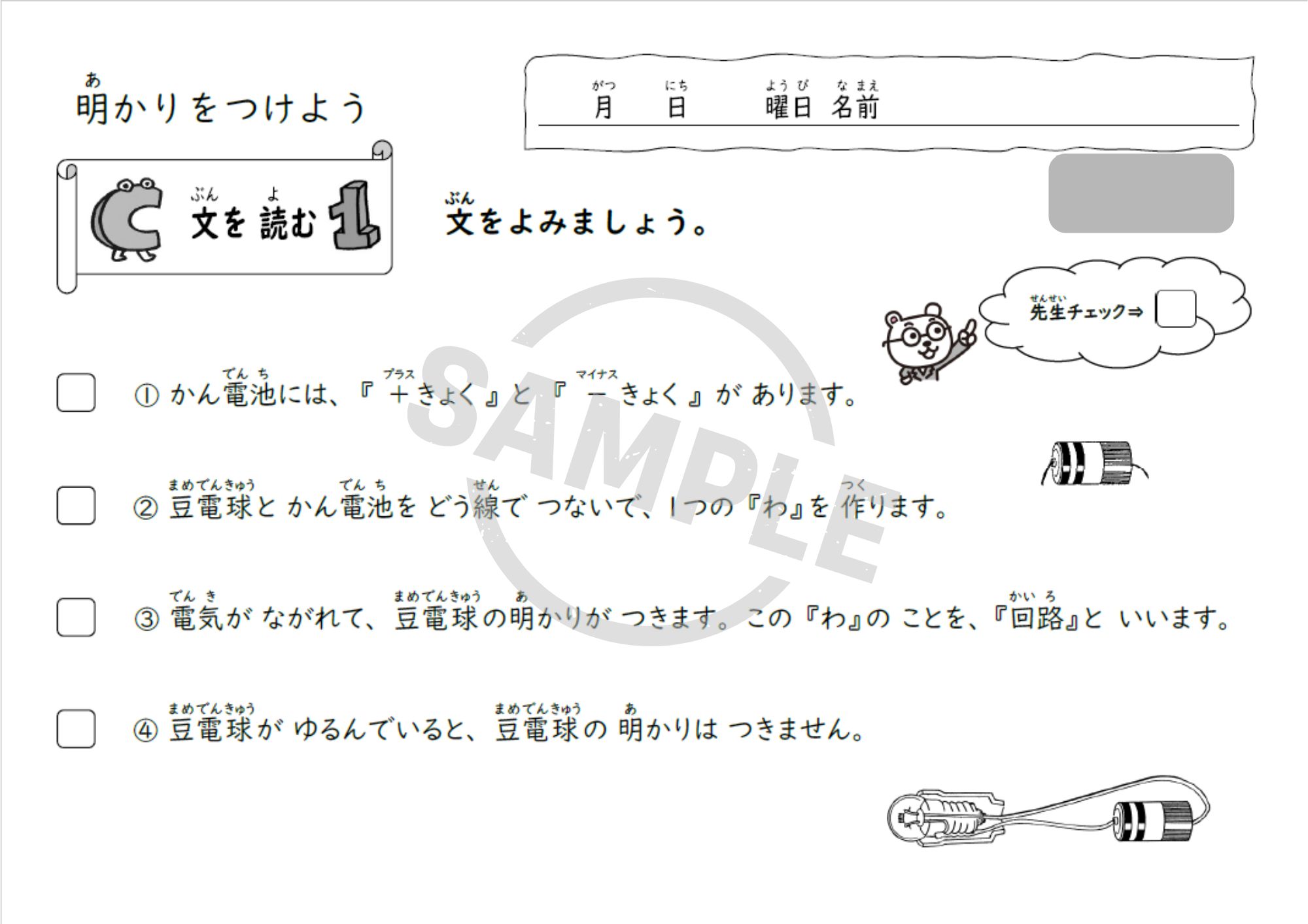 小学3年理科「明かりをつけよう」単元用の教材で、