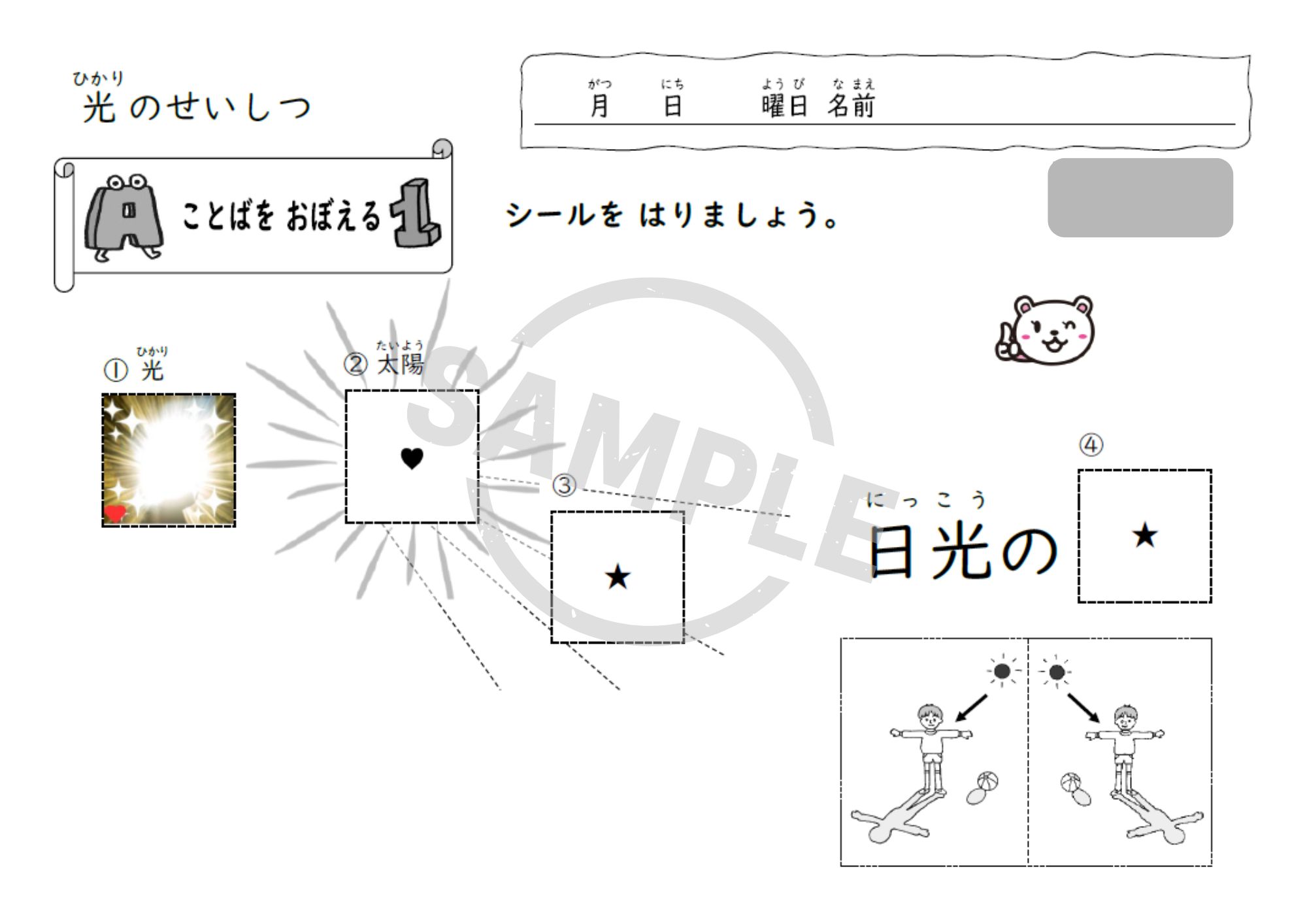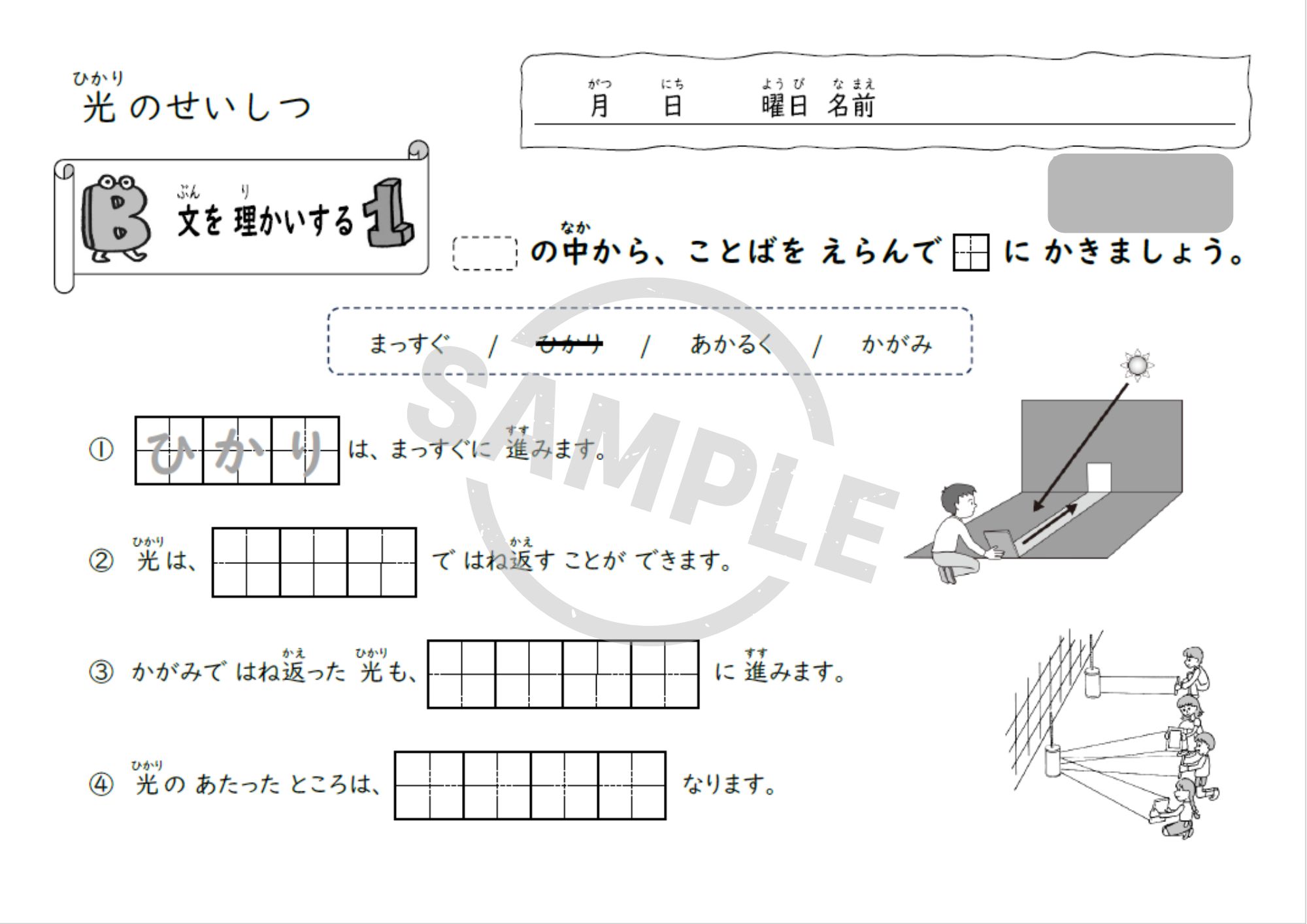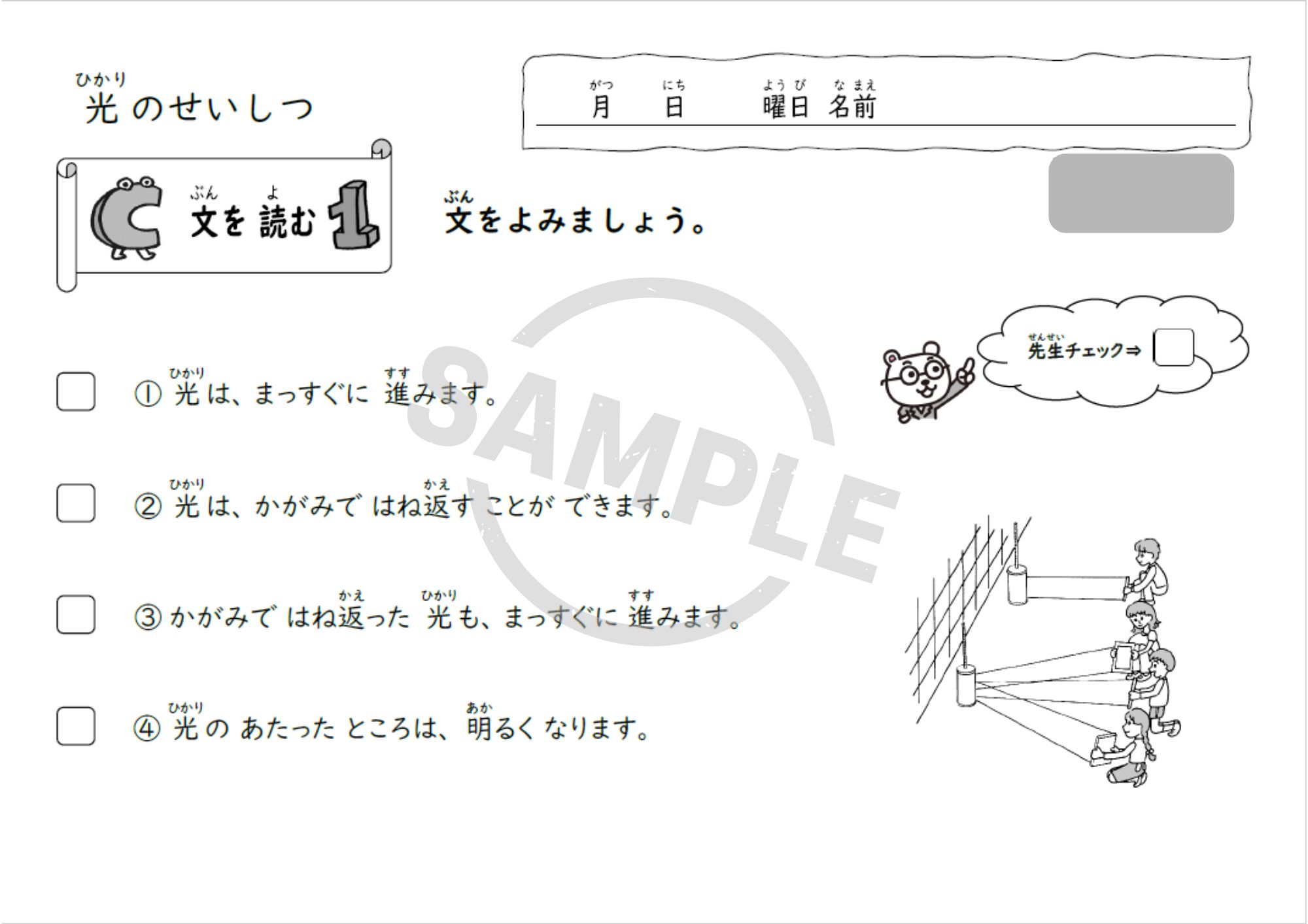 小学3年理科「光のせいしつ」単元用の教材で、