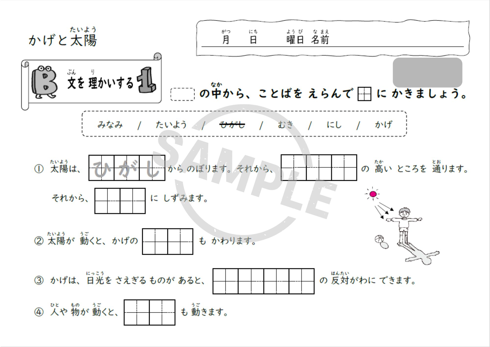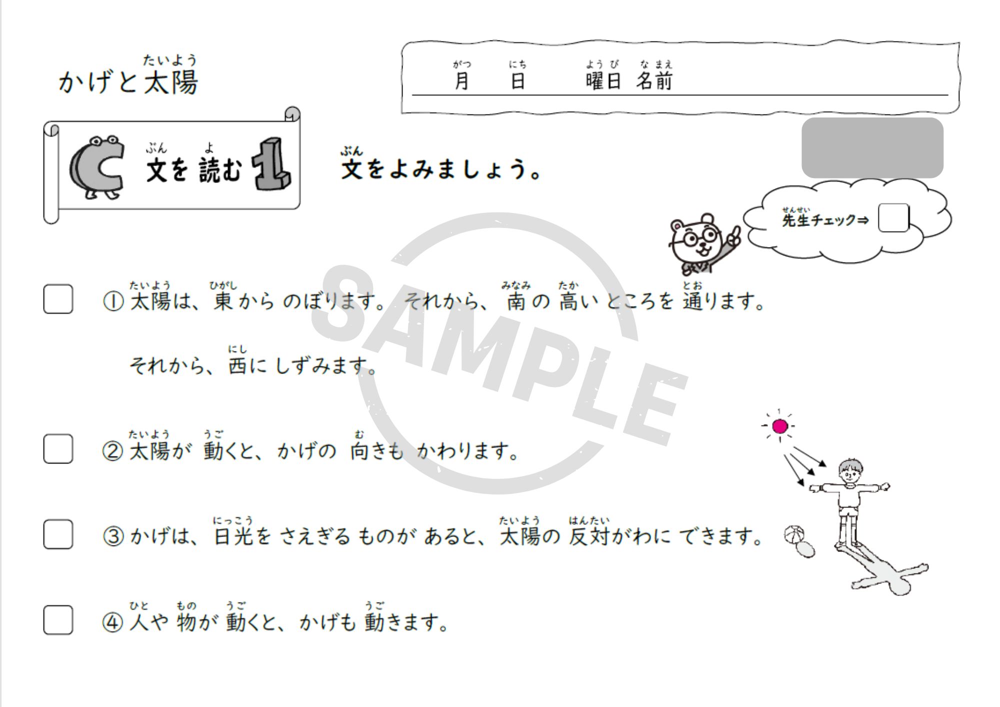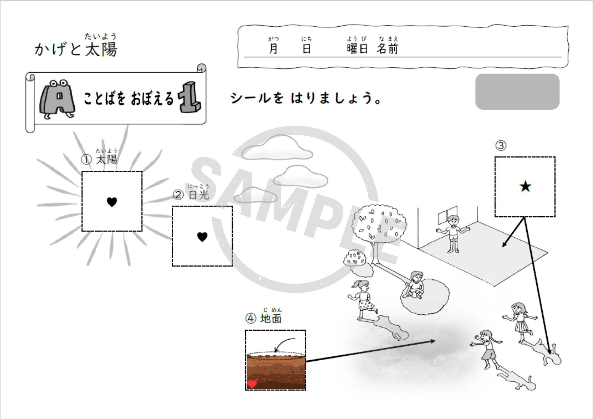 小学3年理科「かげと太陽」単元用の教材で、